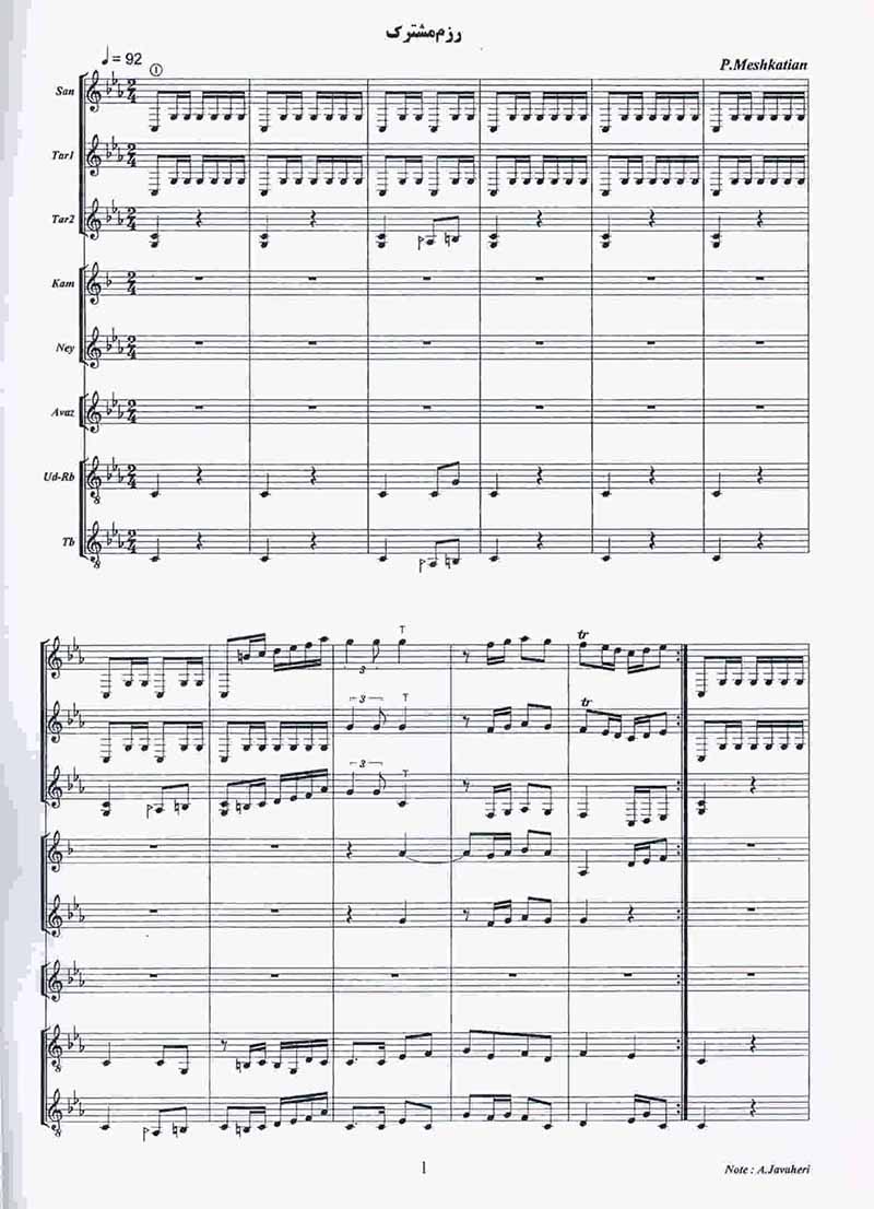 قطعه رزم مشترک در سال 1356توسط گروه موسیقی ضبط واجرا شد برای ساز بندی این مجموعه سعی شده است از علائم عمومی و تقریبا مشترک استفاده شود