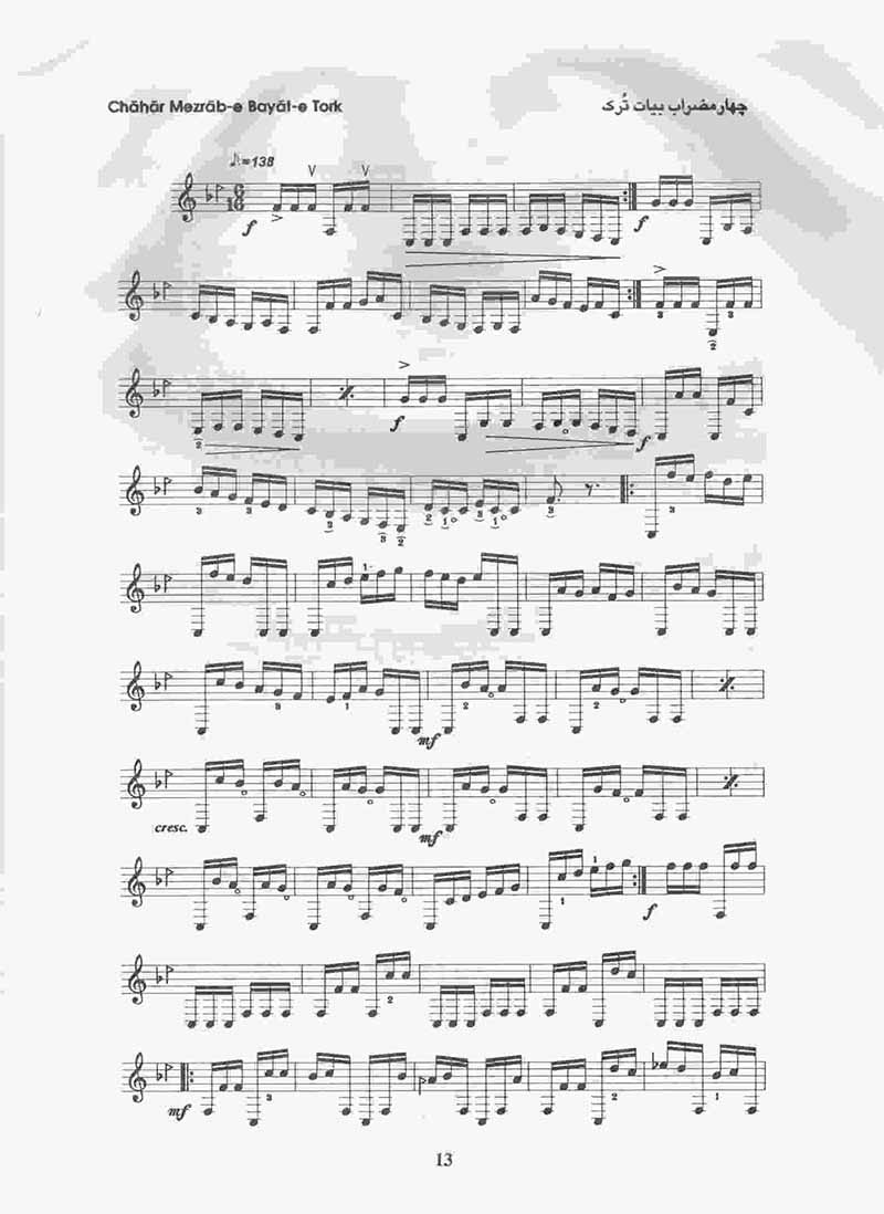 ریتم های متنوعی که در قطعات این دفتر آمده نتیجه برخورد آزاد با جوهر وجودی آنهاست کتاب تار وسه تار