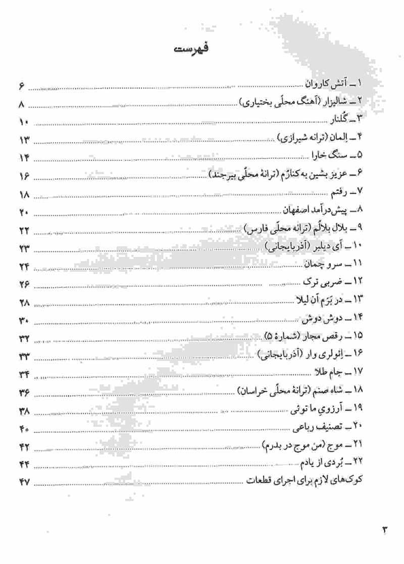 گلچینی از تصنیف ها وترانه های خاطره انگیز و ملودی های بومی ایران برای تار ستاربه نوشته انوش جهانشاهی