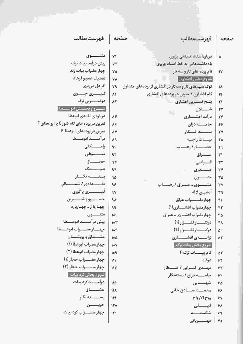 دفتر چهارم - تمرین ها و ضربی ها - ردیف های افشاری، بات ترک، ابوعطا،کرد بیات