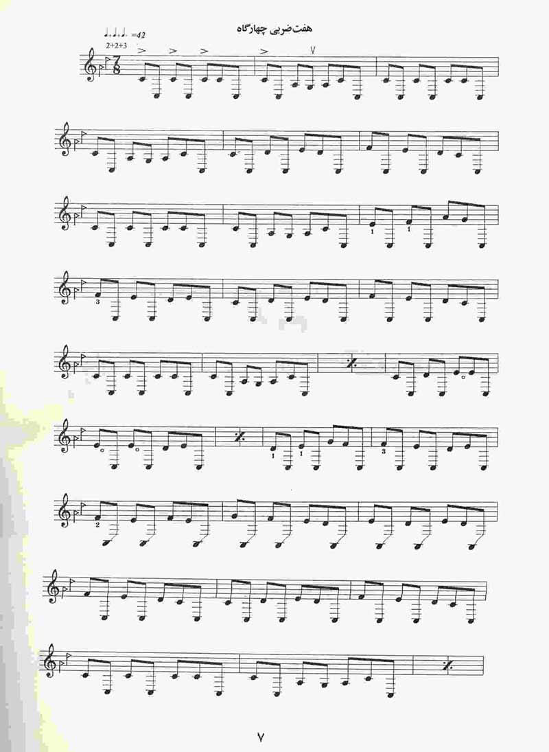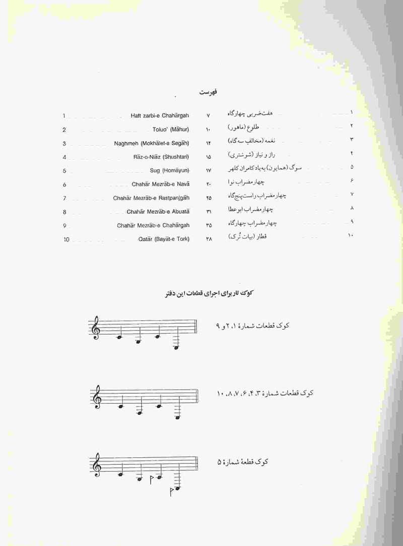 قطعات این دفتر گزیده اثاری است که بین سال هلی 1364تا 1367تصنیف شده اند هدف از انتشار این مجموعه دست یابی هنر جویان به تکنیک های پیشرفته