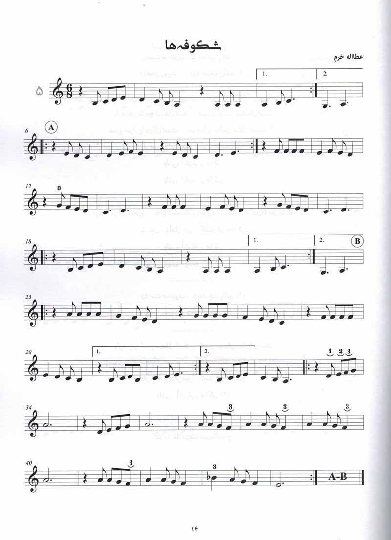 نگارنده در این کتاب برای هر دستگاه مجموعه ای از تصانیف را به شکل ساده و بدون نت های زینت و مضرب گذاری های گیج کننده گردآوری کرده است. لازم به ذکر است که برخی از این تصانیف دارای روایت های متفاوت و حتی با کلام متفاوت هستند که در این مجموعه رایج ترین روایت در نظر گرفته شده است.