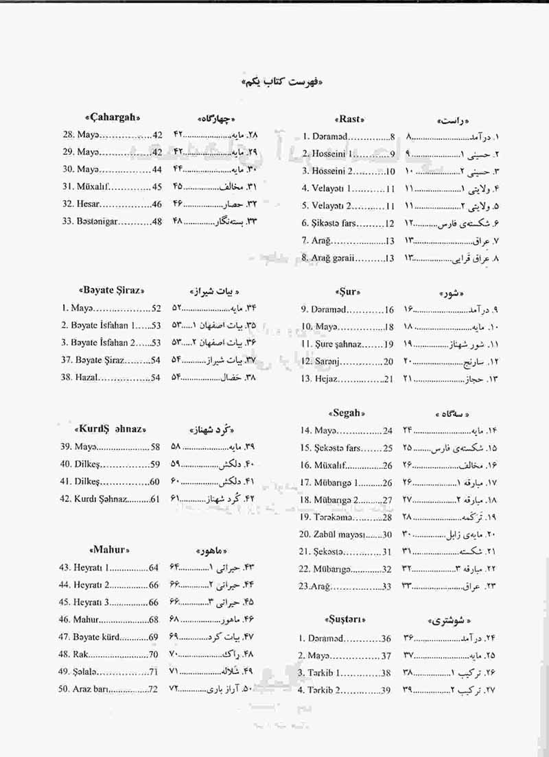 کتاب تار نغمه های آذربایجانی به گرداوری علی برلیانی به نشر چنگ
