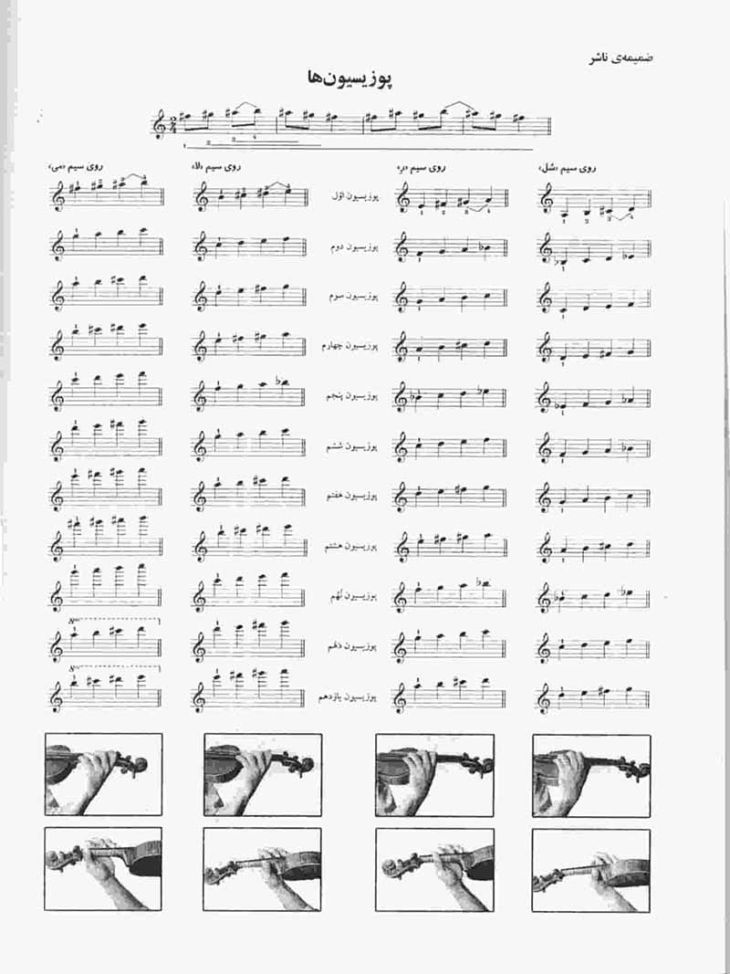 این کتاب شامل انگشت گذاری روی یک سیم، دوسیم، معرفی برخی تکنیک های آرشه کشیاجرای تریاد های تنیک، آکورد ها ، آرپژ ها و دوبل نت هاست.