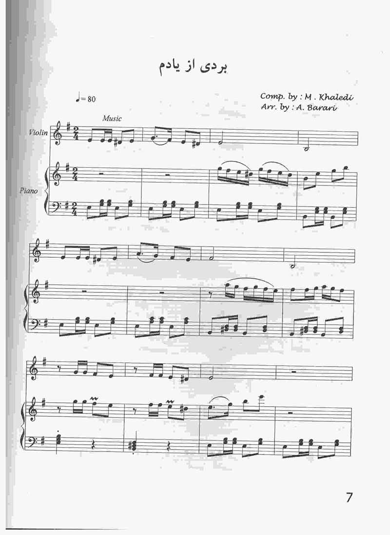 مجموعه ای از خاطره انگیز ترین آهنگ ها(پژواک)(برای ویولن و پیانو) این کتاب مجموعه ای از ترانه های خاطره انگیز و ماندگار