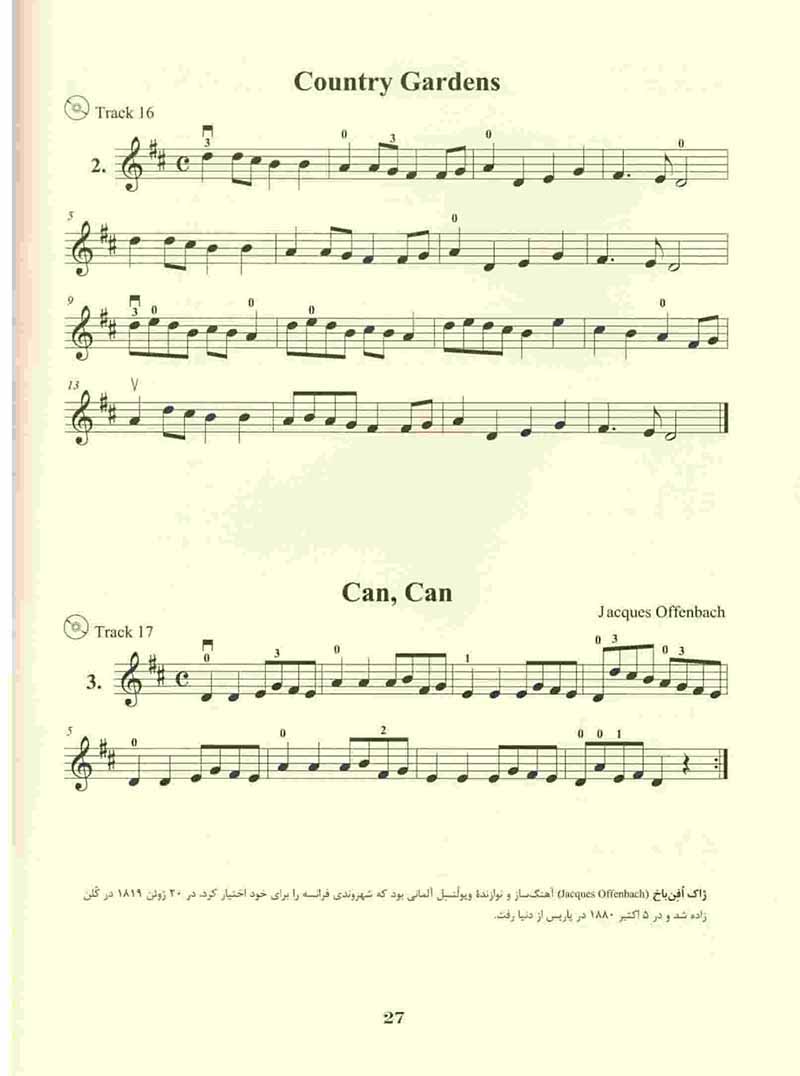 این کتاب سعی دارد مقدمات نوازندگی ویولن را در بیست وهشت جلسه به شما بیاموزد به این ترتیب که برای هر جلسه مطالب و دروسی در نظر گرفته شده که شما باید در طول یک هفته انها را بار ها و بار ها تمرین کنید