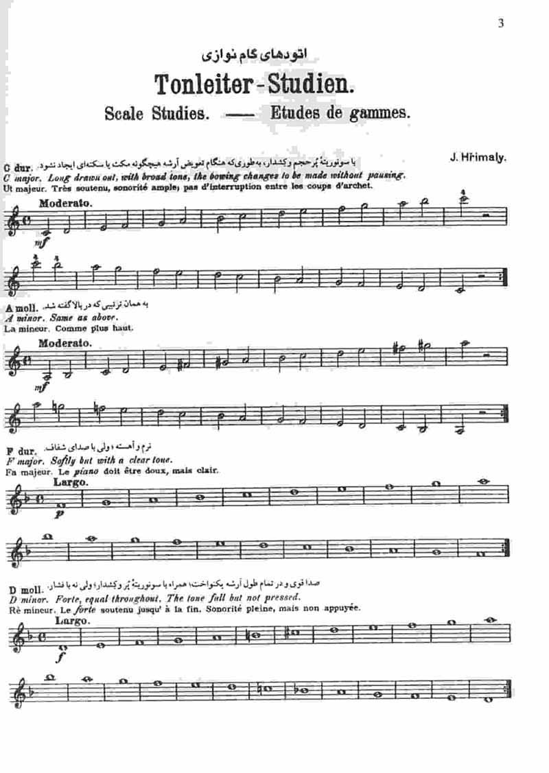 اتود های گام نوازی اثر ژ-هریمالی به ترجمه محمد رضا گرگین زاده برای ویولن.