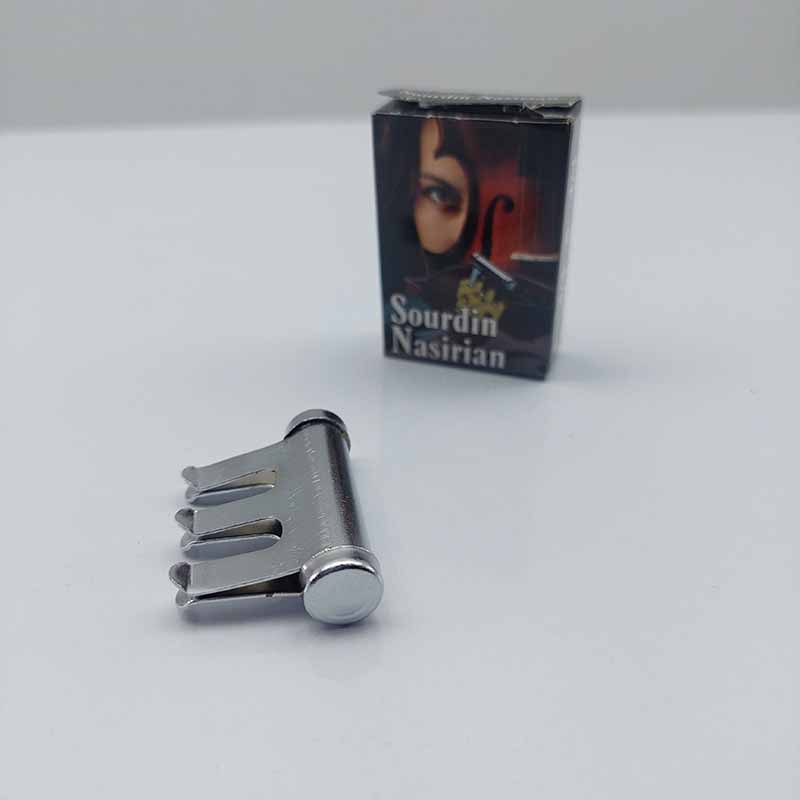 سوردین ویولن فلزی نصیریان یک سوردین ایرانی مناسب است که در مواقع ضروری به کاهش صدای ساز شما کمک میکند.