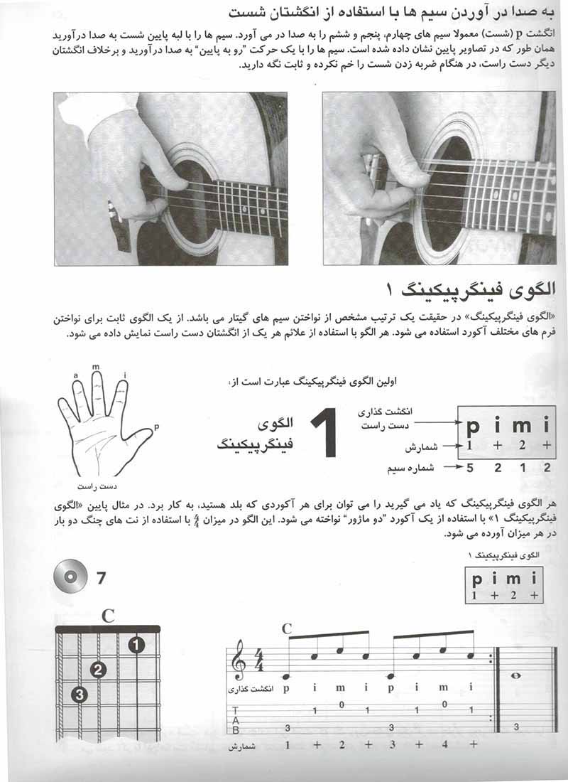 مطالب کتاب گیتار متد فینگرپیکینگ از آکوردها و الگوی آرپژهای ساده فینگرپیکینگ آغاز شده و تا یادگیری حرکت نتهای باس، تکنیکهای دست راست و چپ، توالی آکوردهای جَز و بلوز، مبحث انتقال یک قطعه، ایدههایی برای همراهی غنیتر آهنگ و الگوهای آرپژ پیشرفتهتر ادامه پیدا میکند. CD همراه کتاب گیتار متد فینگرپیکینگ شامل تمامی مثالها و نمونههای نوشته شده بوده و باعث روانتر و لذتبخشتر شدن جریان یادگیری میشود