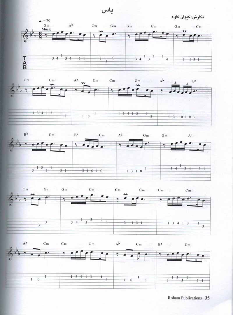 مجموعه ای که پیش رو دارید شامل بیست آهنگ ایرانی میباشد که برای نوازندگان گیتار، پیانو، کیبورد و .. تهیه و نگارش گردیده است. برای نوازندگان گیتار به غیر از نت نویسی از سیستم دیگری به نام تبلیچر نیز استفاده گردیده است.
