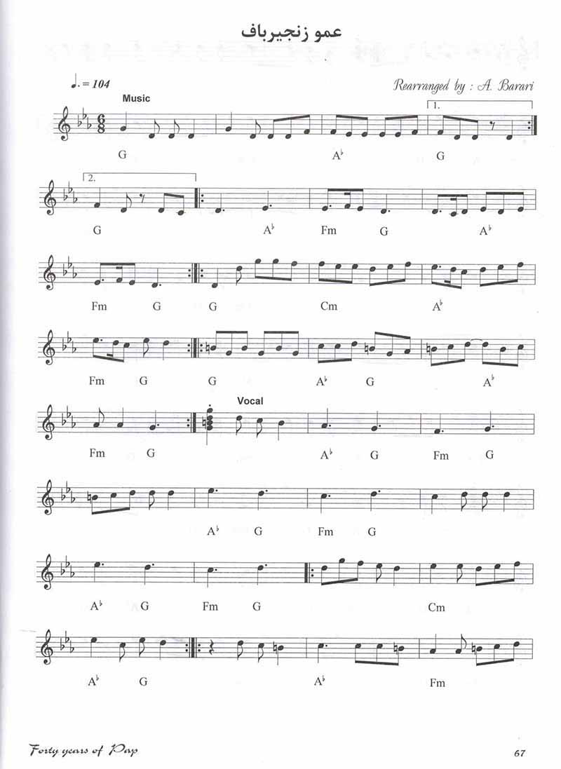 4-از آنجا که فقط خط ملودی نوشته شده،از نت های زینت و آپوژیاتور استفاده نشده است.
