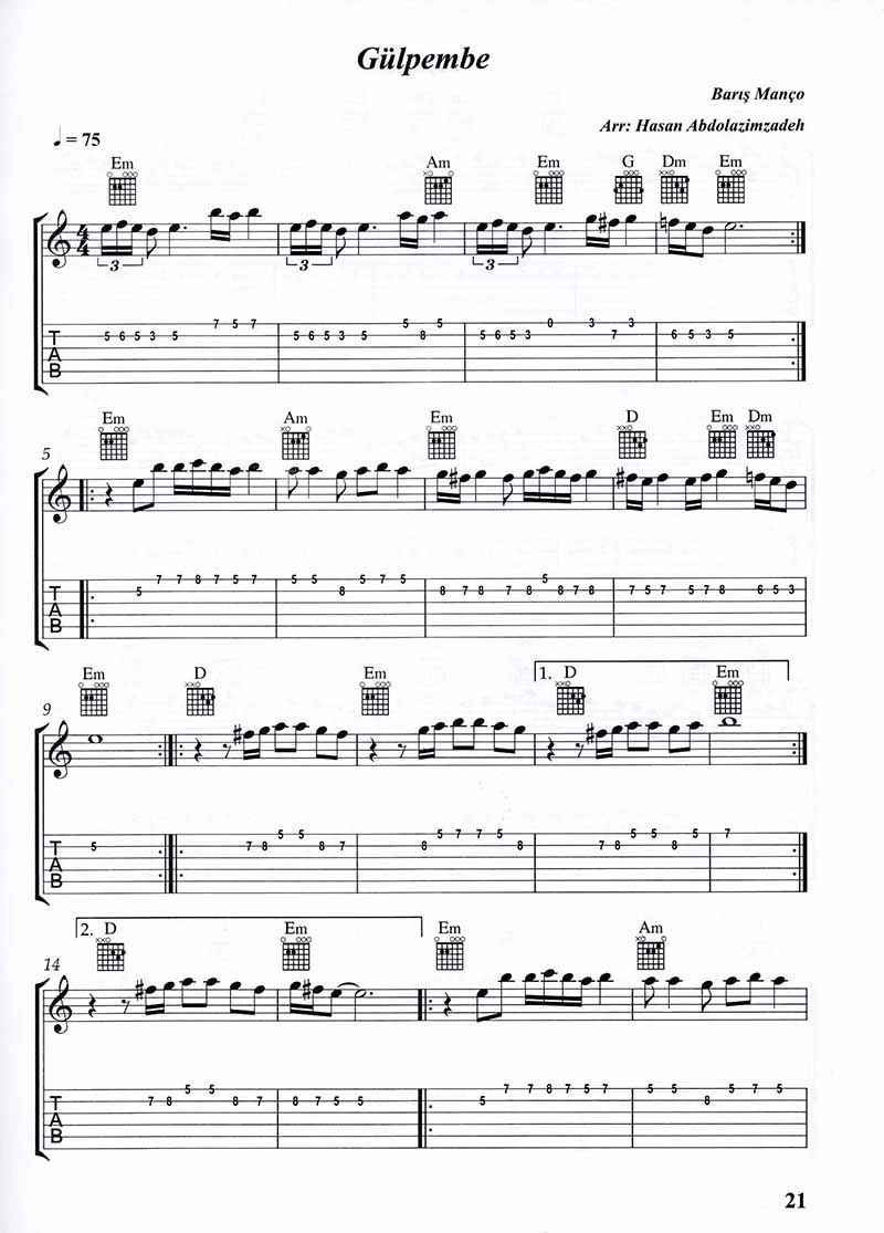 جلد اول برای هنرجویان مبتدی تا متوسط، جلد دوم برای هنرجویان متوسط و جلد سوم برای هنرجویان پیشرفته تهیه و تنظیم شده است. در انتخاب قطعات سعی شده تا از هر سه نوع سبک موسیقی ( راک آناتولی، پاپ آناتولی و آرابسک) قطعات مشهور هر سبک انتخاب شود.