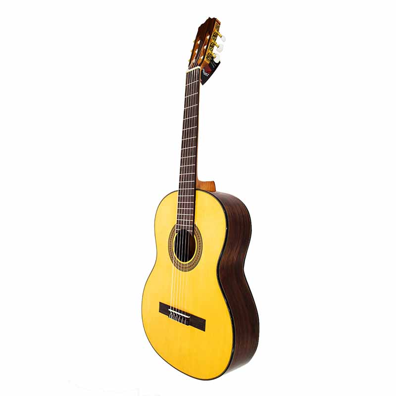 صفحه رویی گیتار پالادو مدل CG90 از جنس چوب مرغوب والنات آمریکایی میباشد. صفحه پشتی از چوب والنات آمریکایی و صفحه رویی نیز از چوب اسپروس ساخته شده است که یکی از بهترین و محبوبترین چوبها در ساخت گیتار کلاسیک به حساب میآید. این گیتار علاوه بر خوش دست بودن، داشتن تاچی نرم و صدایی زیبا، خوش قیمت نیز هست که موجب شده تمامی خواستههای یک نوازنده را برآورده سازد.