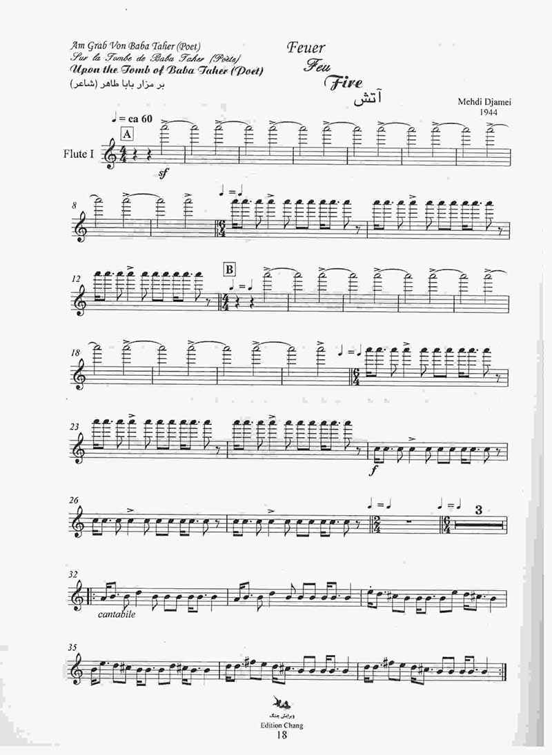 کتاب آتش برای چهار فلوت و سپرانو واحد تحقیق و پژوهش موسیقی انتشارات چنگ یه نویسندگی مهدی جامعی