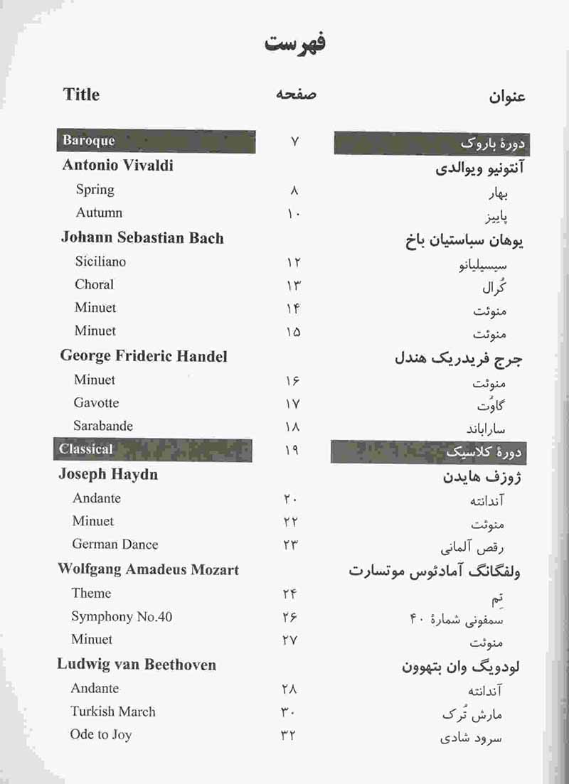 کتاب شامل ملودی ماندگارو آشنا با تنظیمی آسان و قابل اجرا
