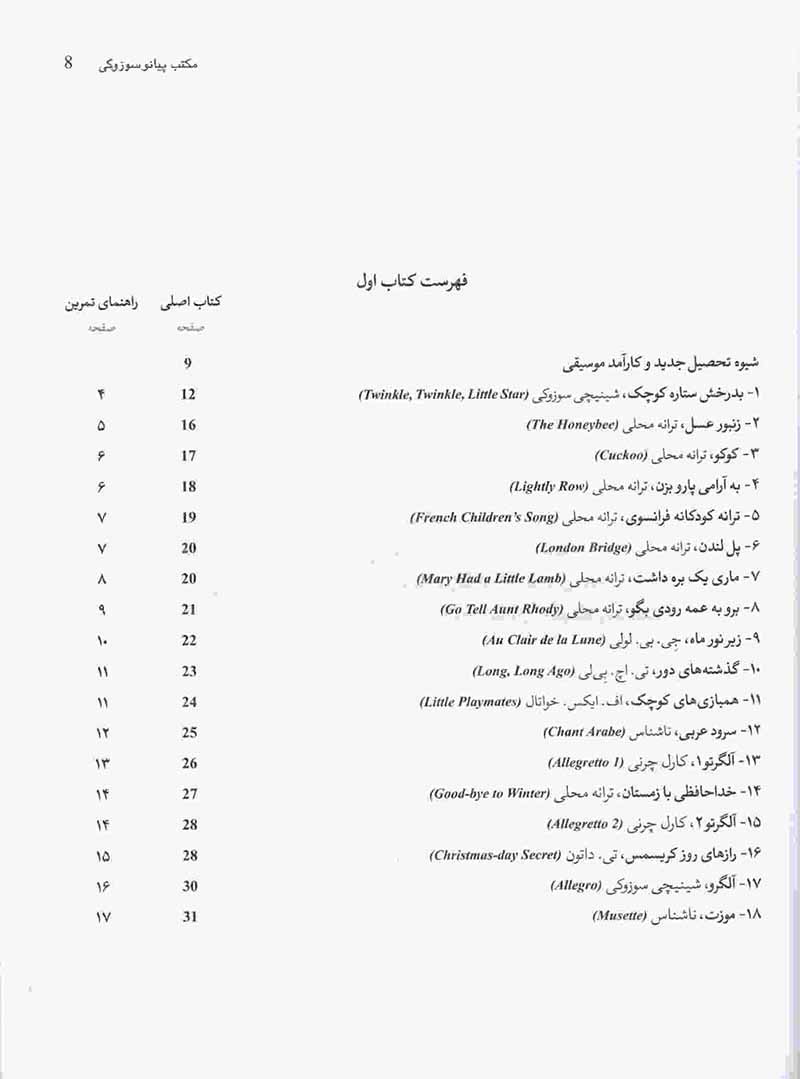 مکتب پیانو سوزوکی (کتاب اول و دوم ) وبه نویسندگی شینچی سوزوکی به ترجمه اشکان خمسه پور