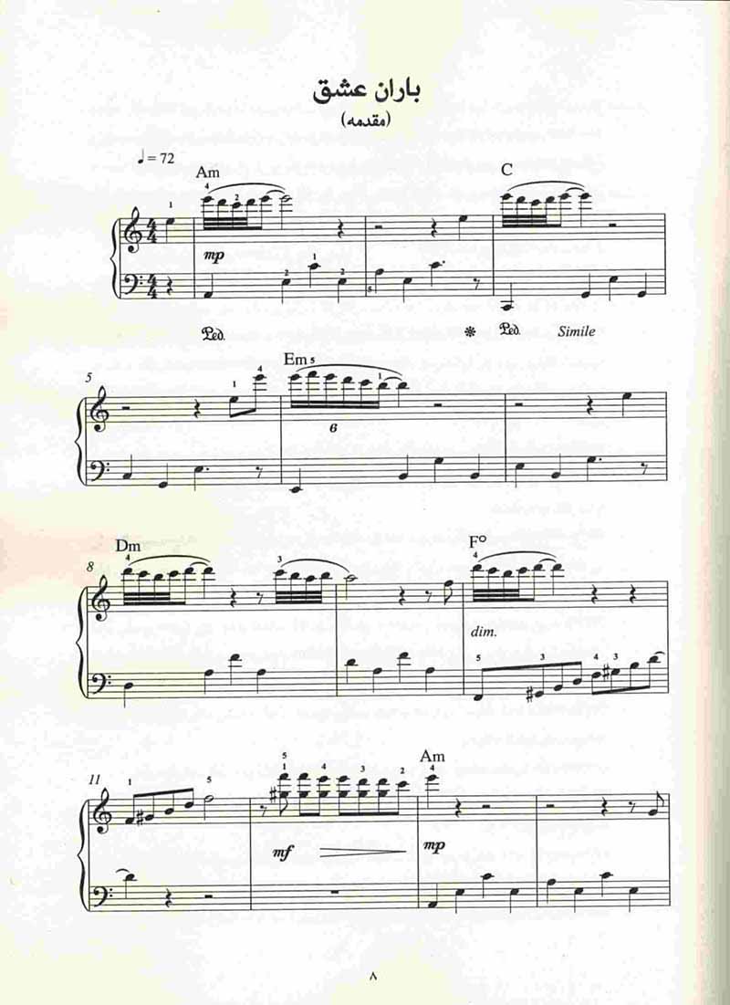 باران عشق هفت قطعه برای پیانو به کوشش شیرین احمد لو-رعنا چشم آذر- ناصر چشم آذر به نشر نای و نی.
