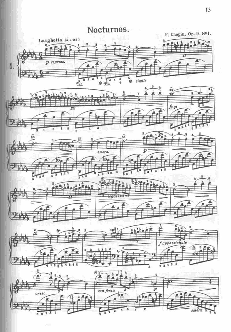 شوپن از تکنیک بسیار پیشرفته و بالایی برخوردار بود و همین امر بود که سبب میشد تسلطی کامل و استادانه به ساز داشته باشد. مجموعه نکتورن ها اثر شوپن به ترجمه محمد رضا گرگین زاده میباشد.