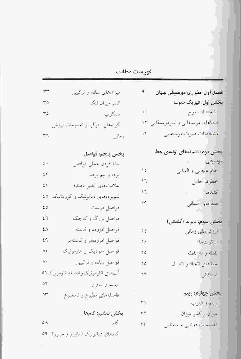 مجموعه حاضر شاکل شش قطعه سر فصل کلی اعم از تئوری موسیقی ایران