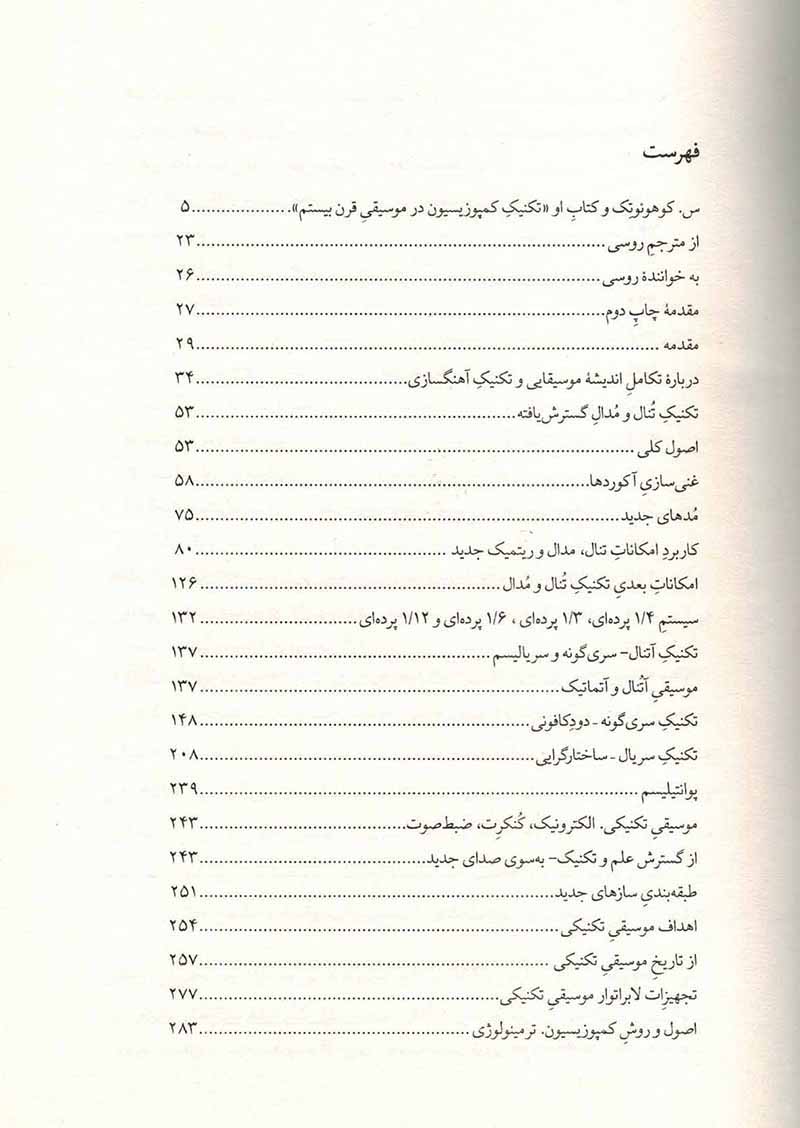 این کتاب کوششی است برای فراگیری روش های معاصر کمپوزیسیون به ویژه موسیقی اروپای غربی. استیراد کوهوئوتک در این کتاب دست به حل مساله فوق العاده پیچیده ای زده است. یعنی نمایش منظره وسیع تکنیک آهنگ سازی معاصر به خواننده. مؤلف تاکید میکند که کتابش را به طور خاص برای آهنگ سازان در نظر گرفته است. ام در جریان آماده سازی کتاب برای چاپ به زبان روسی روشن شد که علاوه بر آهنگسازان، همچنین موسیقی شناسان، پژوهشگران، نوازندگان، منتقدین موسیقی، ویراستاران و هرکسی که با موسیقی زنده و رو به رشد سروکار دارد، به آن علاقه پیدا می کند. در بخش ابتدایی کتاب، تحول تکنیک معاصر تصنیف موسیقی با دایره وسیعی از پدیده های تاریخی ارتباط پیدا می کند و کوششی برای طبقه بندی کلی موسیقی معاصر از لحاظ روش های کمپوزیسیون صورت می گیرد. در بخش های بعدی، کتاب به بررسی تخصصی مهم ترین روش های تصنیف موسیقی مختص قرن بیستم می پردازد.