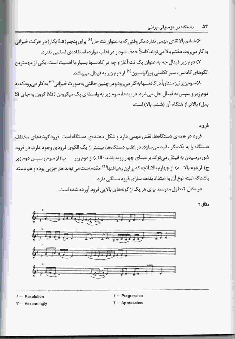 این کتاب یکی از تاثیر گذارترین منابع در حوزه نظریه پردازی درباره فواصل و گام های موسیقی ایرانی است که پرفسور هرمز فرهت در آن ابتدا دو نظریه اصلی علی نقی وزیری و مهدی برکشلی در این خصوص را مورد بررسی نقادانه قرار می دهند و سپس نظریه خود را تحت عنوان« نظریه فواصل انعطاف پذیر» ارائه می کنند. خواننده محترم در این اثر ارزشمند با تعاریف و چارچوب های دقیقی برای اصلی ترین اصطلاحات در موسیقی ایرانی از جمله ردیف، مقام، گوشه، درآمد، گام و همچنین مشخصه های ملودیک و مقامی فرود، درآمد و گوشه های هر یک از دستگاه های موسیقی ایرانی آشنا می شود.