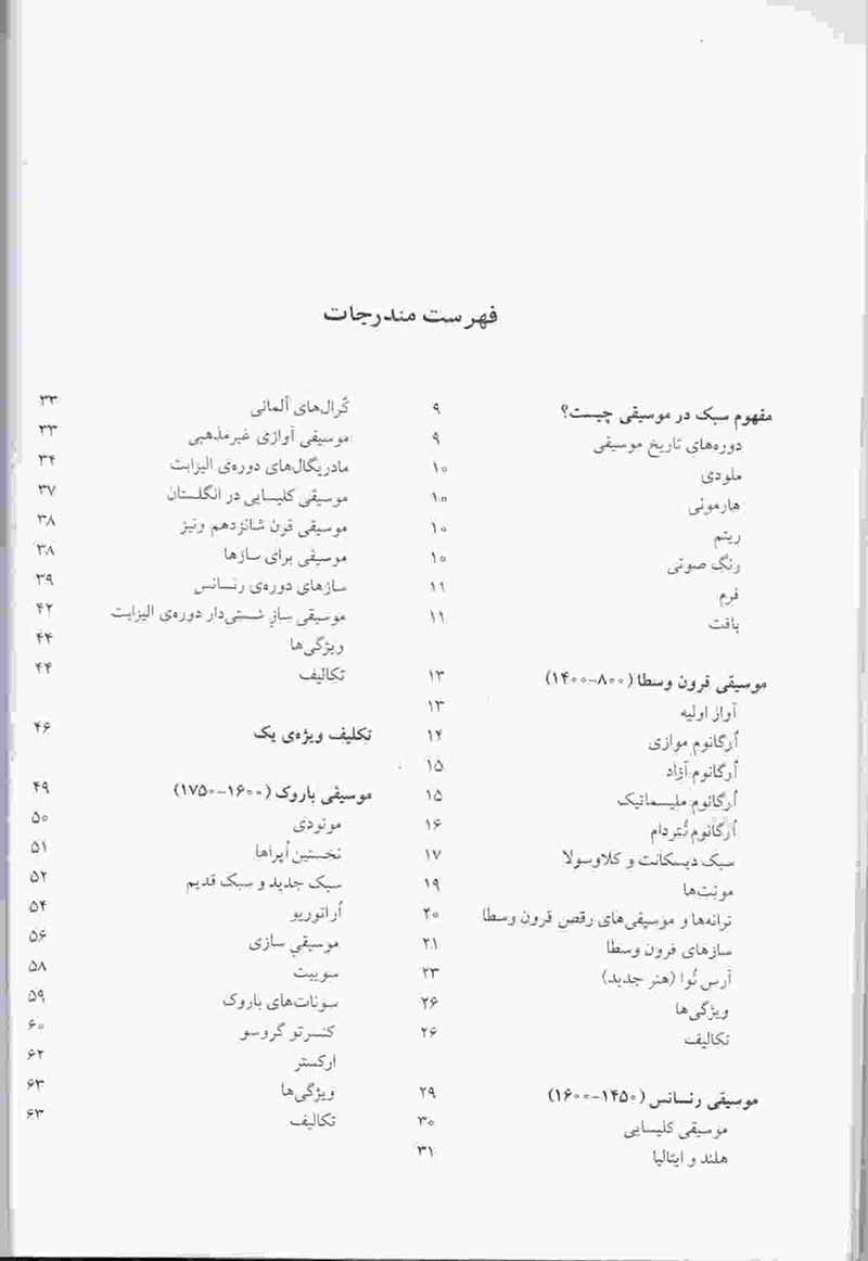 این کنتاب به شرح اجمالی تاریخ موسیقی غرب میپردازد وبه تمام موارد مهم آن با تاکیدی خاص بر تشخیص سبک ها ودوره ها اشاره میکند