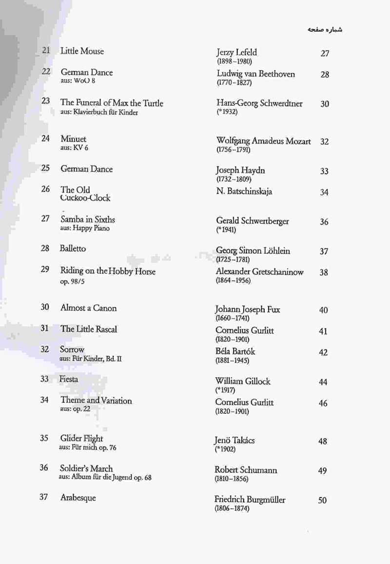 این مجموعه شامل برگزیده ای از قطعات ساده اصلی پیانو از دوره های مختلف و انواع متد ها میباشد